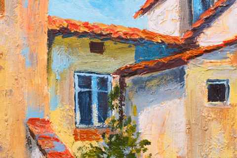 陽光が降り注ぐ地中海の情緒あふれる街並み。