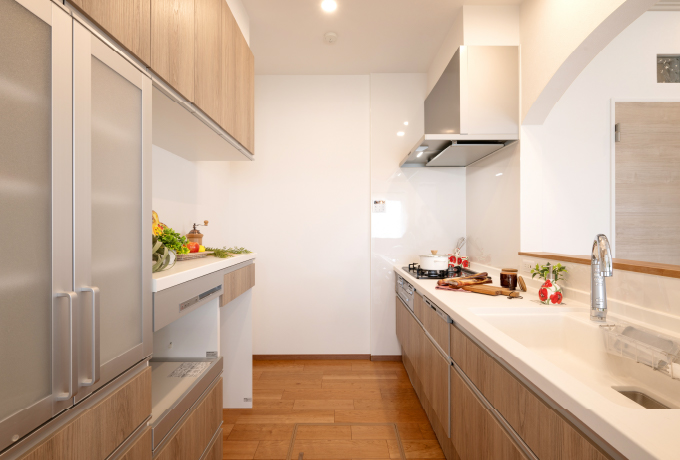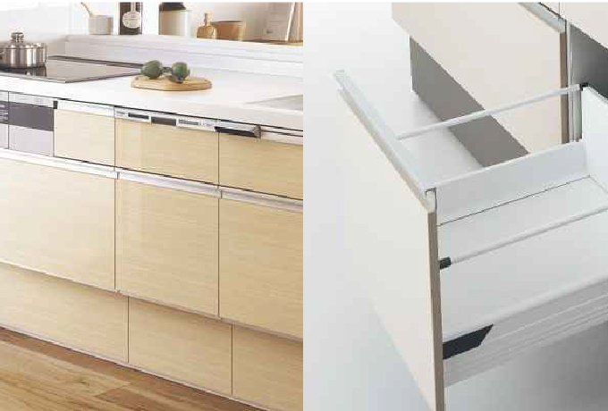シンプルなデザインながら、いつもの暮らしに笑顔があふれる便利さが詰まった機能的なキッチン。抜群の収納力とお手入れのしやすさ、使い勝手もよく調理作業中もストレスフリーです。