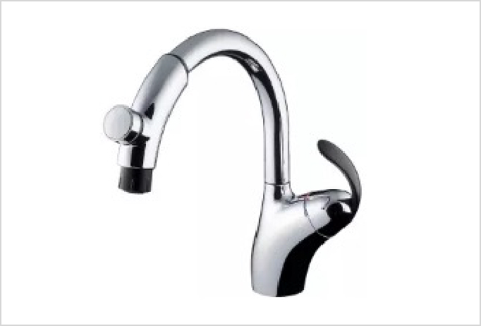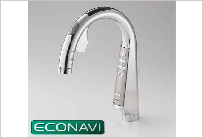 お料理中に両手がふさがっている時でも、軽くタッチするだけで水の出し止めができるタッチスイッチ式は節水にもなり経済的。スタイリッシュなグースネック型。