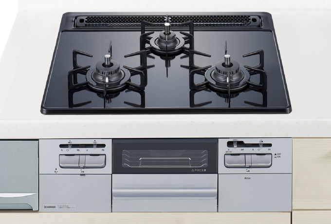 ダブル高火力&ダブルトロ火の温度調節機能で簡単調理。耐久性に優れたガラストップも嬉しいポイント。