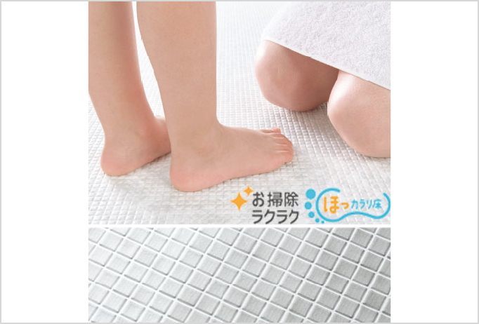 床の内側にあるクッション層が畳のようなやわらかさを実現。断熱材の役割も果たすW断熱構造で冷気を遮断し、温かさも持続します。