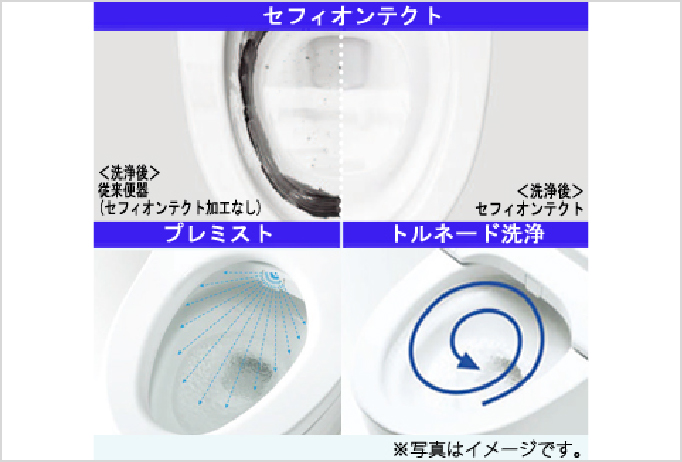 プレミスト、トルネード洗浄、約1,200℃で焼き上げたナノレベルになめらかな陶器表面で、汚れがツルっと落ちてキレイが続きます。