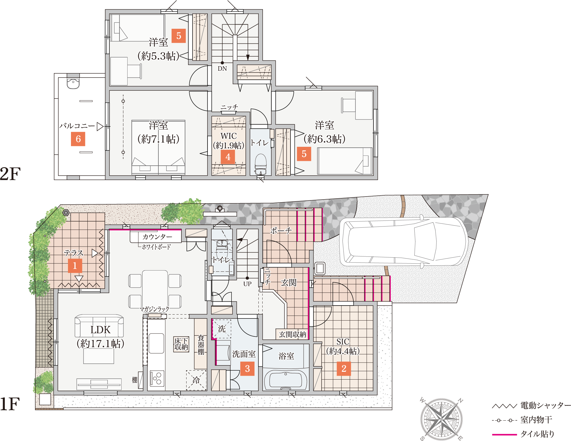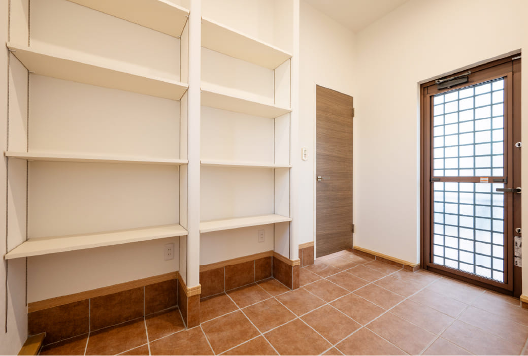 約4.4帖のシューズインクローク(SIC)は外部からの出入口も設けているので、大きなアウトドアグッズも室内を通らずに収納できます。